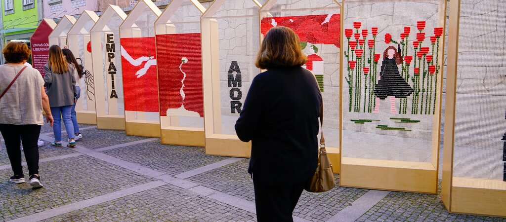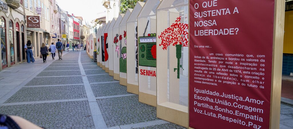 A anteceder a apresentação da exposição “Linhas com Liberdade”, na Rua 1.º de Dezembro, em Esposende, ouviram-se, novamente, canções de abril, pelas vozes de uma das classes de conjunto vocal do 3.º ciclo do Ensino Articulado da Escola de Música de Música de Esposende, dirigida pelo Professor Ernesto Clemente. Esta mostra resulta da Oficina de Instalação de Arte Urbana do Projeto AMAReMAR – Arte e Comunidade, orientada pela artista Ana da Silva, que enquadrou e fez a apresentação dos trabalhos. Tendo por mote e inspiração os acontecimentos que desabrocharam na madrugada de 25 de abril de 1974, esta criação, referiu, foi concebida com recurso à técnica de bordado com linhas de lã e resulta de uma reflexão sobre o conceito e desejo de liberdade(s).