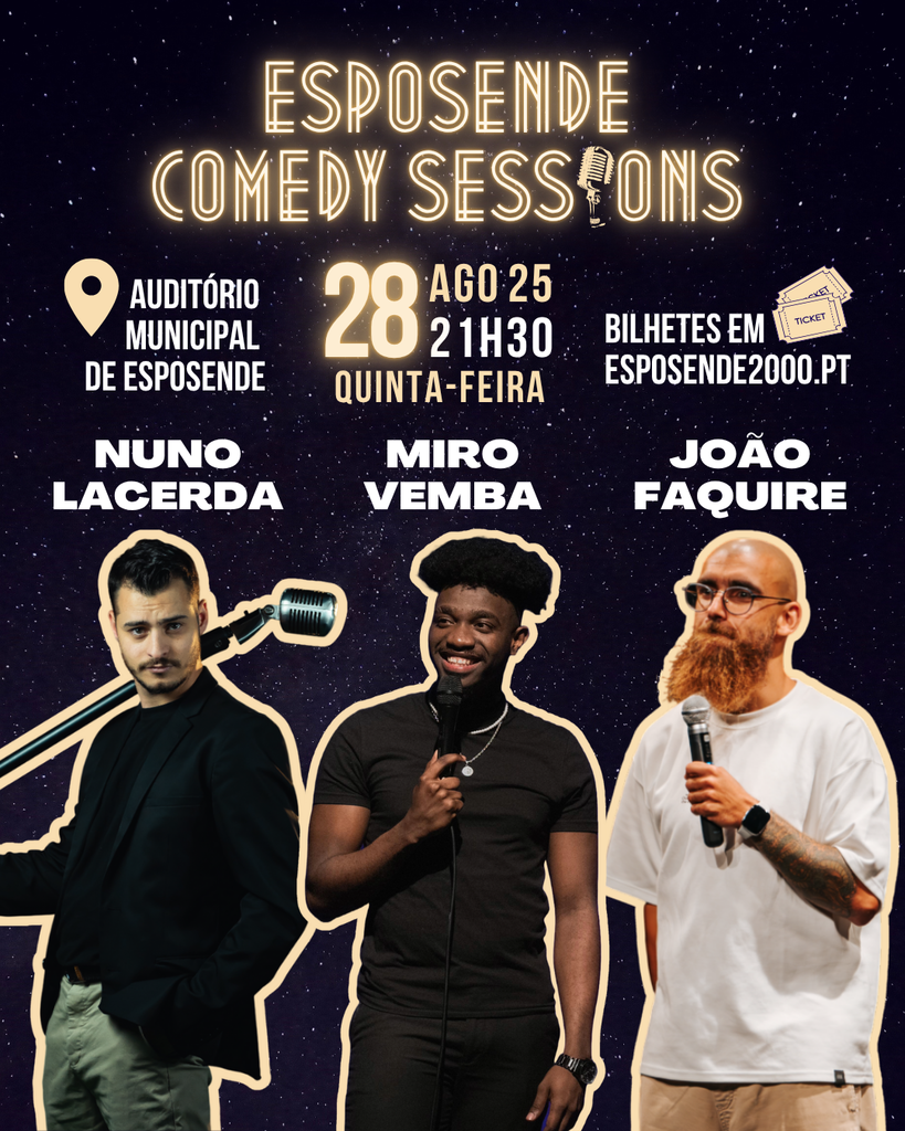 O Auditório Municipal de Esposende vai receber, no próximo dia 28 de agosto de 2025, pelas 21h30, o terceiro e último espetáculo da temporada das Esposende Comedy Sessions, prometendo uma noite explosiva de gargalhadas e boa disposição.