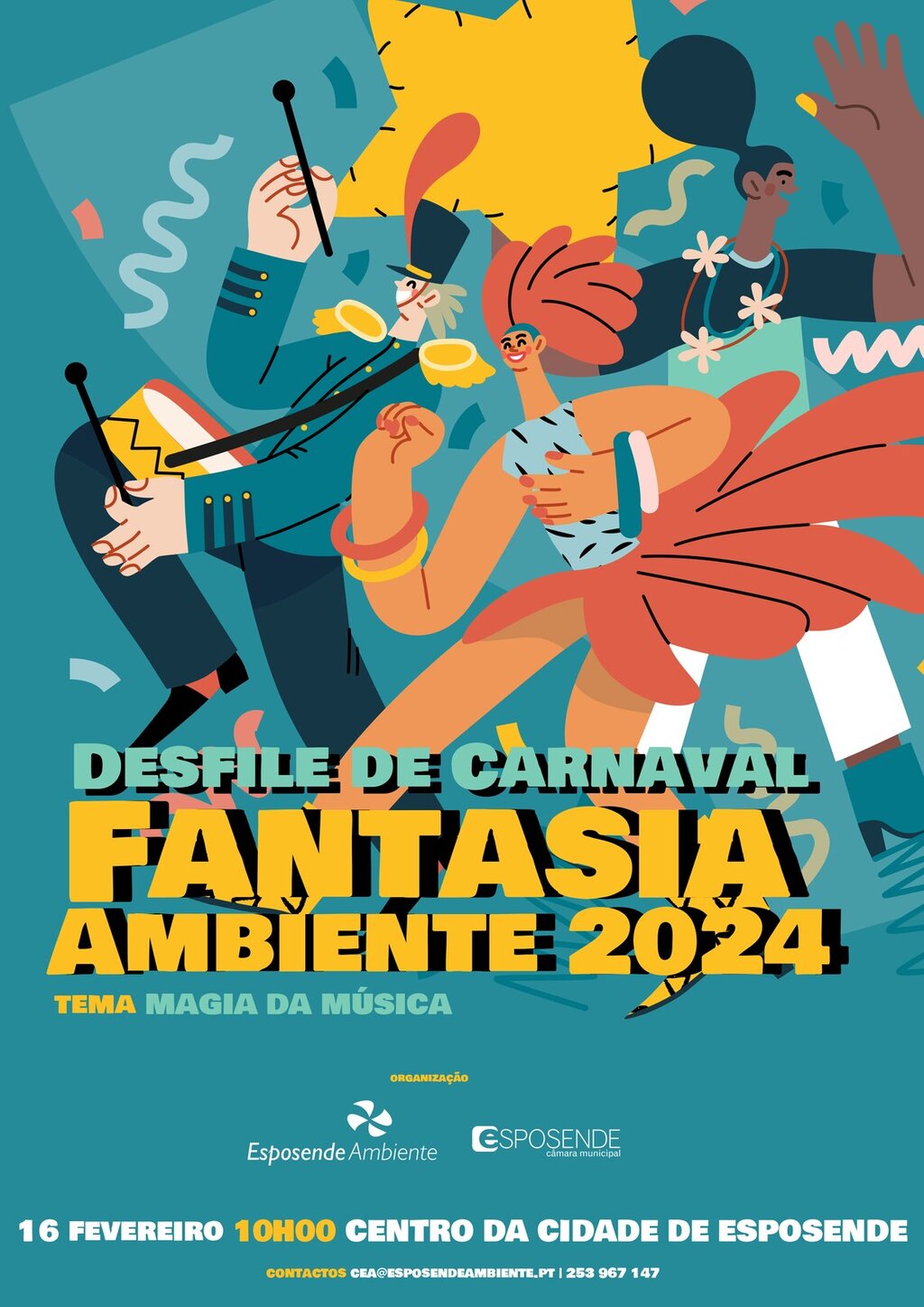 Por seu turno, o Desfile “Fantasia Ambiente”, cujo mote deste ano é a “Magia da Música”, promete revelar toda a imaginação que fervilha entre as crianças das escolas de Esposende. Sexta-feira, 16 de fevereiro, as ruas vão ganhar cor e alegria, com o desfile de centenas de crianças e, para corresponder ao tema, a música será uma constante.