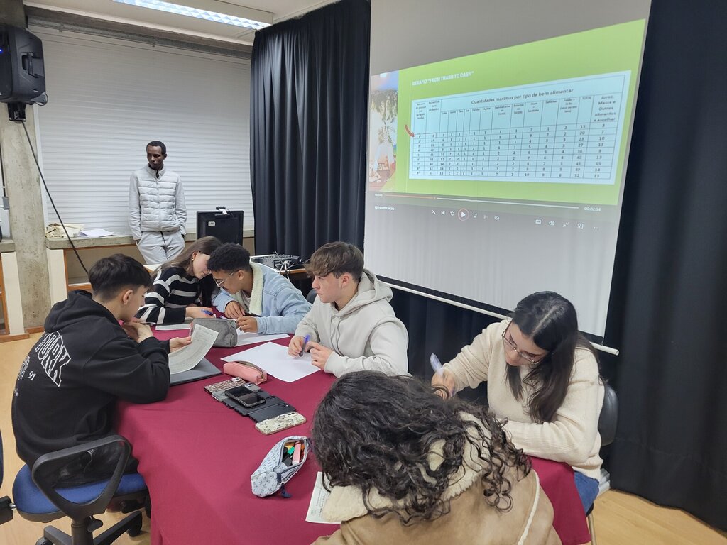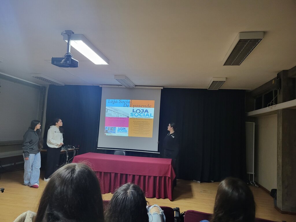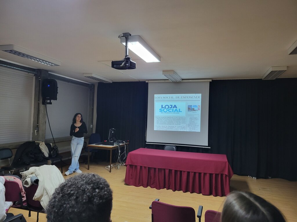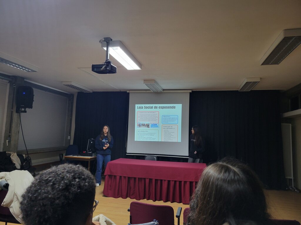 Integrada na disciplina de Cidadania e Desenvolvimento, a sessão teve como foco a apresentação dos trabalhos de pesquisa dos jovens sobre a Loja Social, seguindo-se a apresentação da Loja Social.