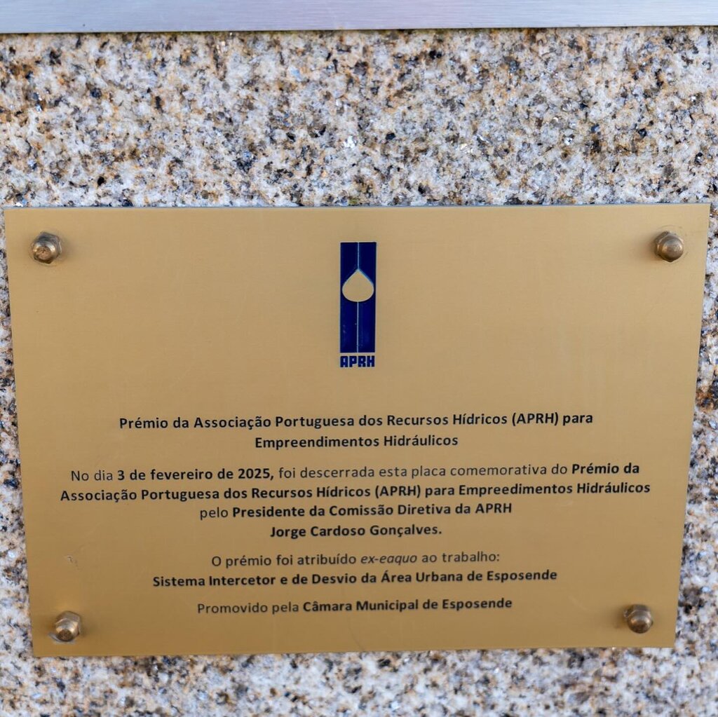 Foi colocada, no Canal Intercetor de Esposende, a placa referente ao 1.º Prémio para Empreendimentos Hidráulicos, com que a Associação Portuguesa dos Recursos Hídricos (APRH) distinguiu esta infraestrutura. A entrega formal do prémio ocorrerá durante o 17.º Congresso da Água, a realizar entre os dias 8 e 11 de abril, na cidade algarvia de Lagos.
