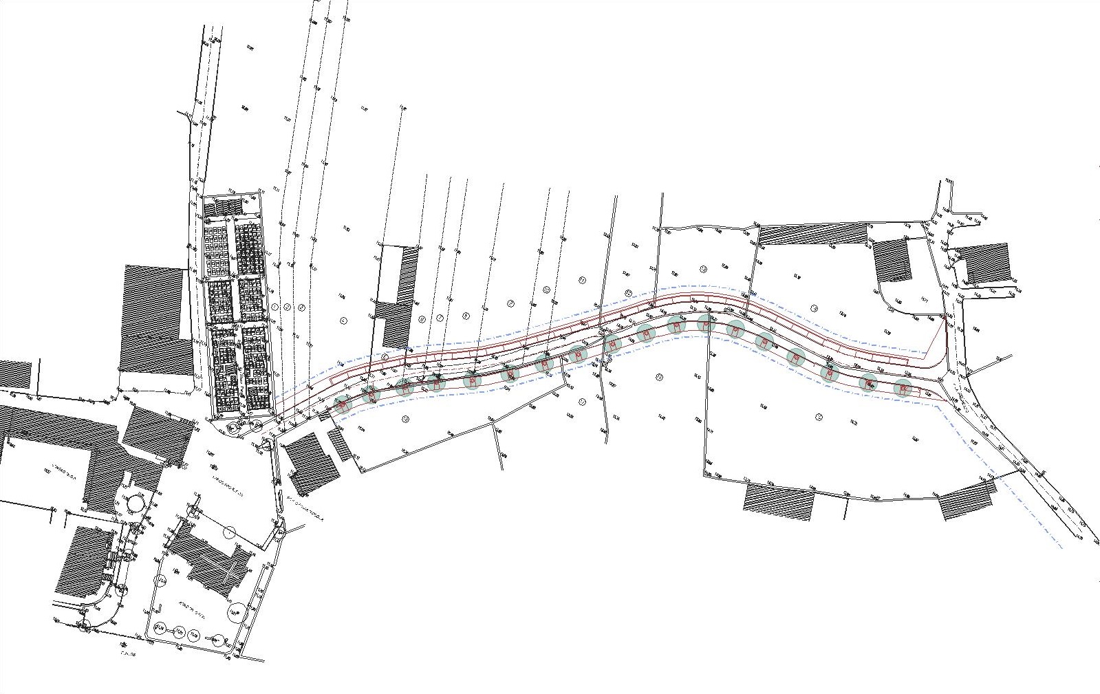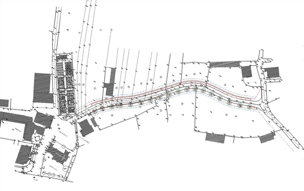 Abertura de um arruamento de caráter secundário baseado no cadastro existente para melhorar a fluidez da estrutura viária e permitir e organizar a ocupação urbana de uma zona carenciada a este nível. Com estacionamento e passeio acessível.