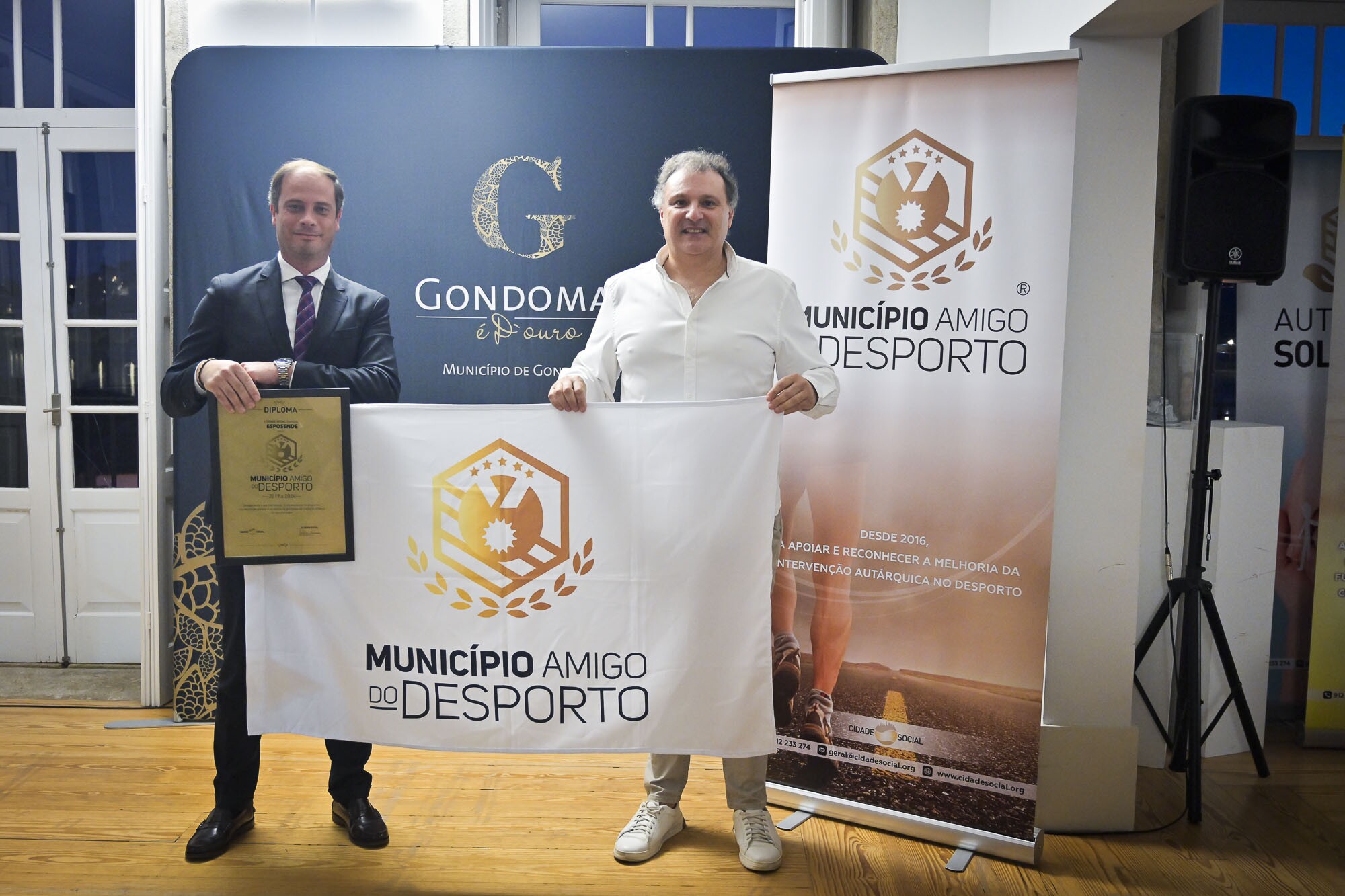 A distinção da CIDADE SOCIAL - plataforma on-line de disponibilização de informações e boas práticas para aumentar o valor da intervenção dos municípios portugueses nas áreas do Desporto, Juventude e Educação, Ação Social - foi entregue ao Vereador do Desporto da Câmara Municipal de Esposende, Rui Losa, em cerimónia realizada no dia 27 novembro, em Gondomar.